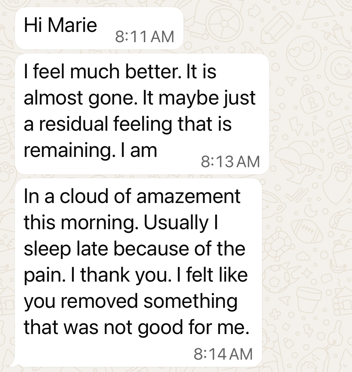 “Honestly, the reading with Marie changed my life. I am a physician, and was experiencing severe burnout from working in the hospital. I had marked fatigue, anxiety, insomnia... The read was spot on and revealed things for me to work on, guided by Marie who has rather remarkable experience in many modalities. But more importantly, Marie showed me things that gave me hope. Don't expect fairy tales and lollipops, Marie tells it like it is, another aspect I totally love about her.”